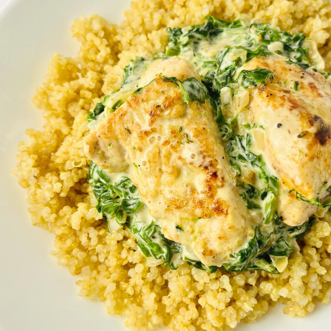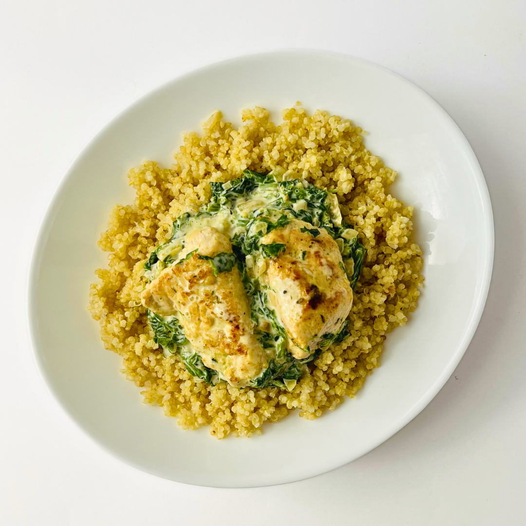 Индейка в сливочно-шпинатном соусе с киноа
