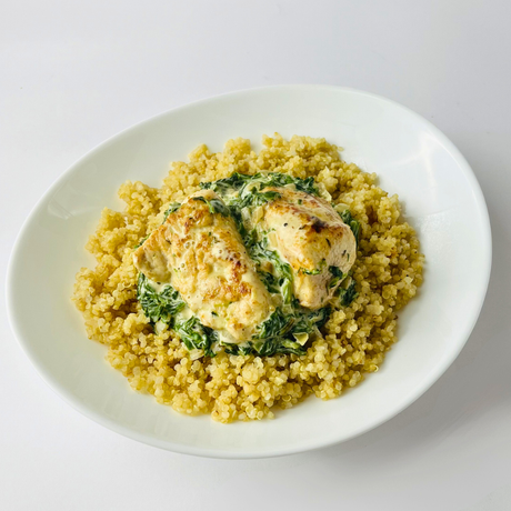 Нежный цыплёнок в сметанно-грибном соусе с хрустящим хашбрауном